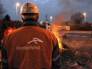 ©AFP / Jean-Christophe Verhaegen – L’accès de l’usine ArcelorMittal bloqué par des ouvriers le 8 mars 2012